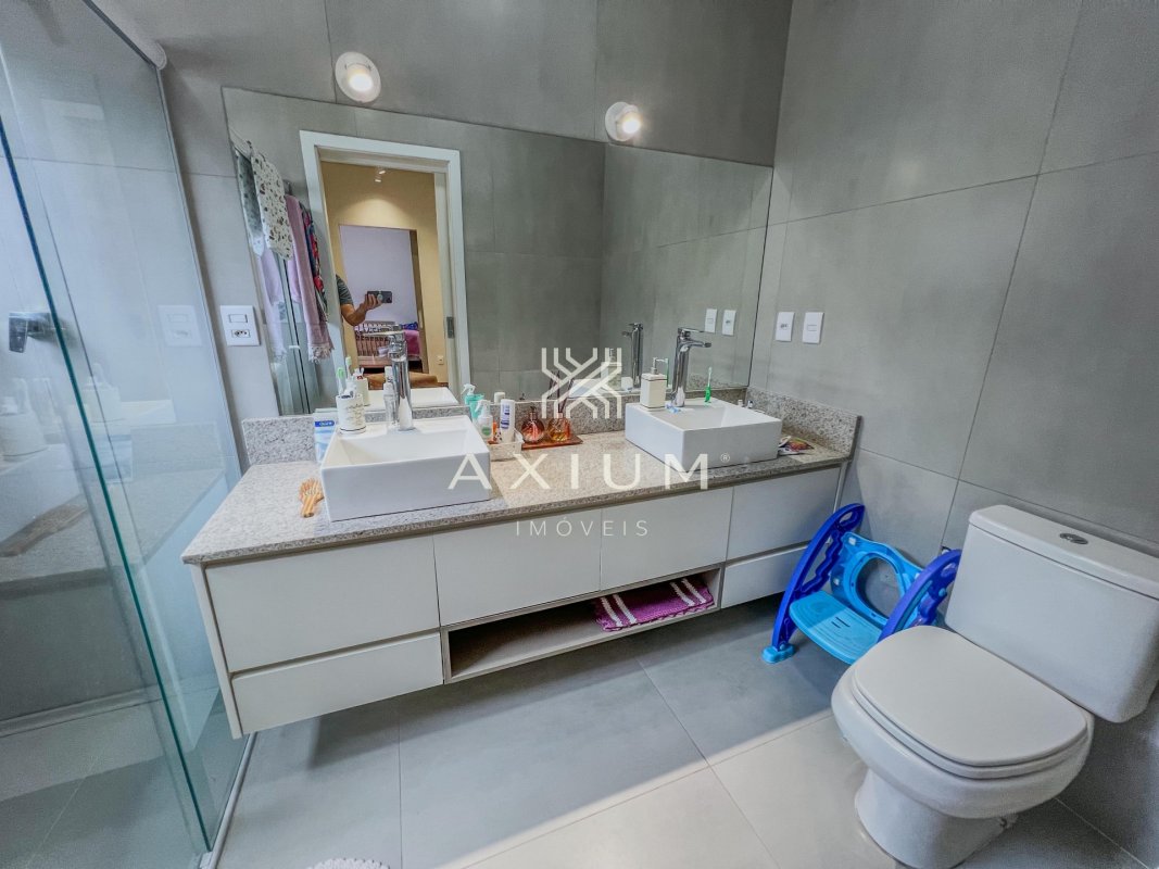 A casa está localizada em Centro, Piratininga - SP, no condomínio Residencial Ávila I, com 227 m², 3 quartos, sendo 2 suítes, 3 banheiros e 2 vagas.